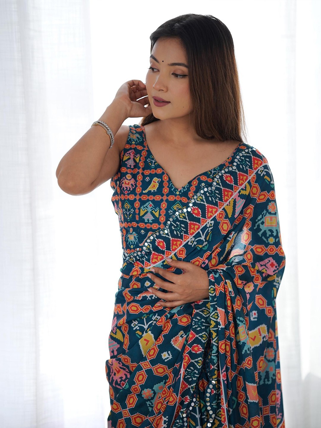 ✔️Pattern :- Print Work with Beautiful Kutchi Work Mirror Lace Border