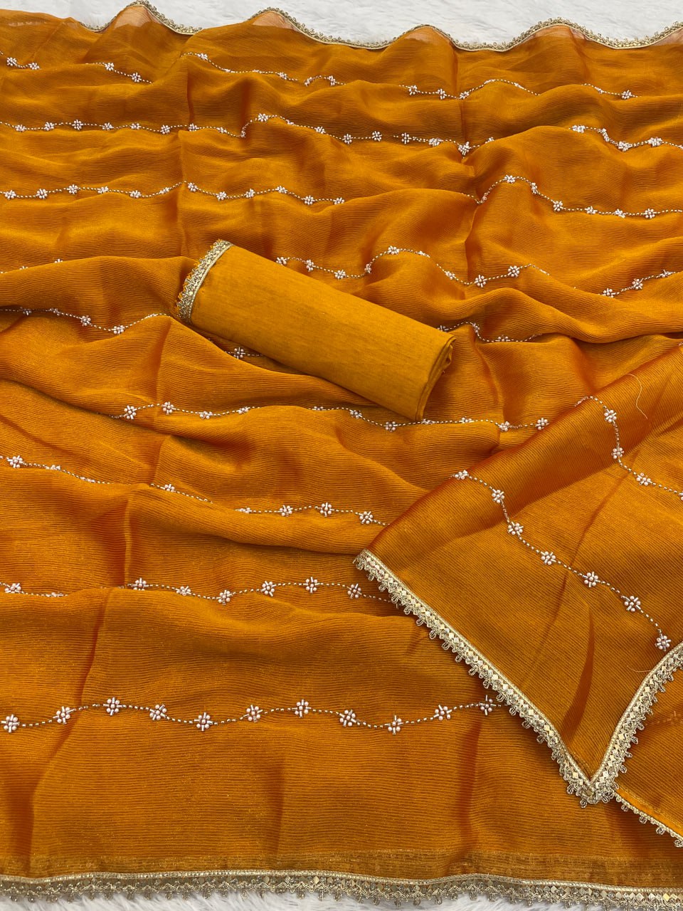 Heavy Smooth Sitara Fabric Saree With Unstitched Blouse -YELLOW